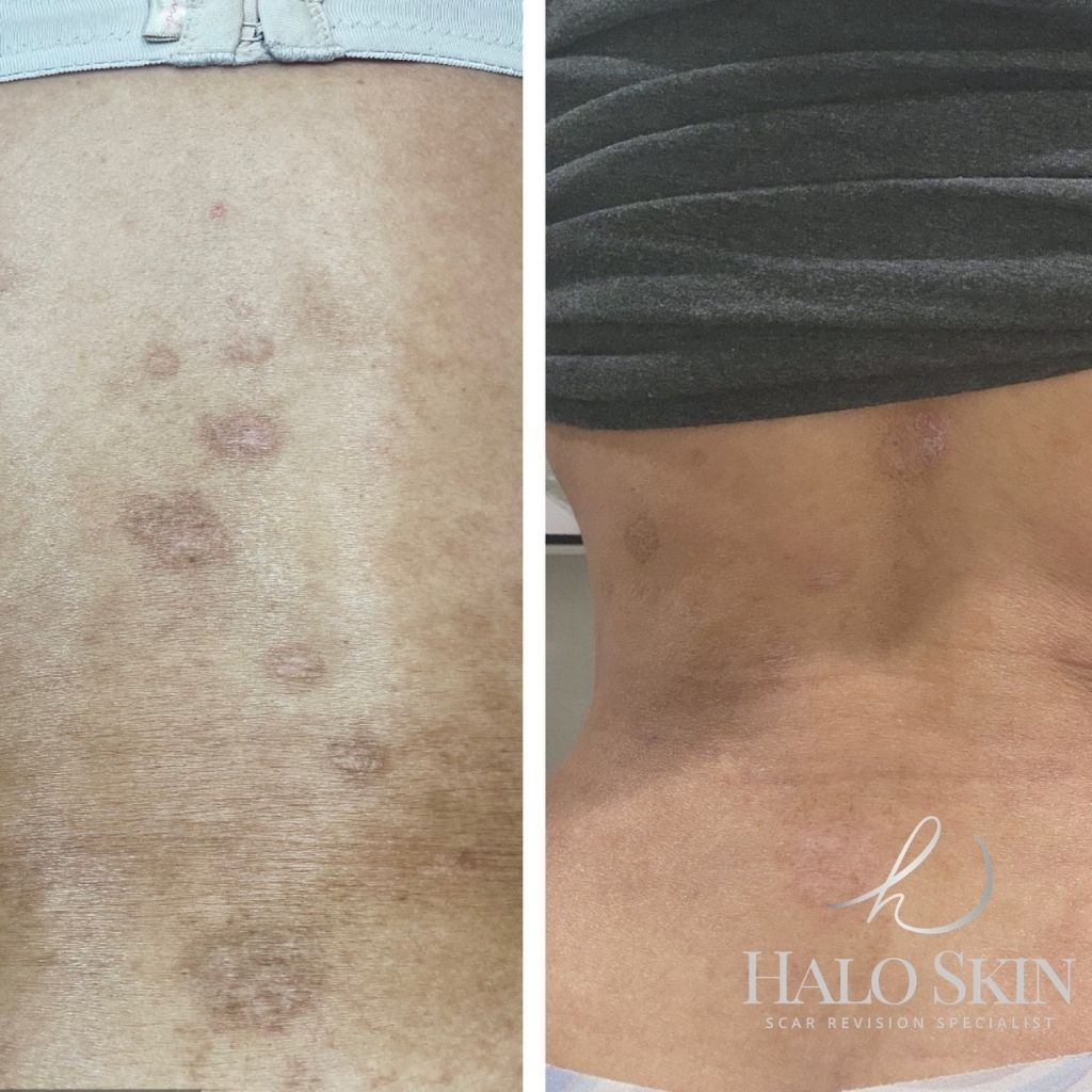 The scars you see pictured here are psoriasis scars more than 13 years old that had hyperpigmentation. This is an example of a scar type that we did not anticipate, but for which the camouflage tattoo treatment was successful for. If you have another scar that you don’t see outlined above, reach out to us to see if we can help. It is always possible schedule a test procedure in the event that you have tried other methods of resolving your scars and want to try a paramedical tattoo.